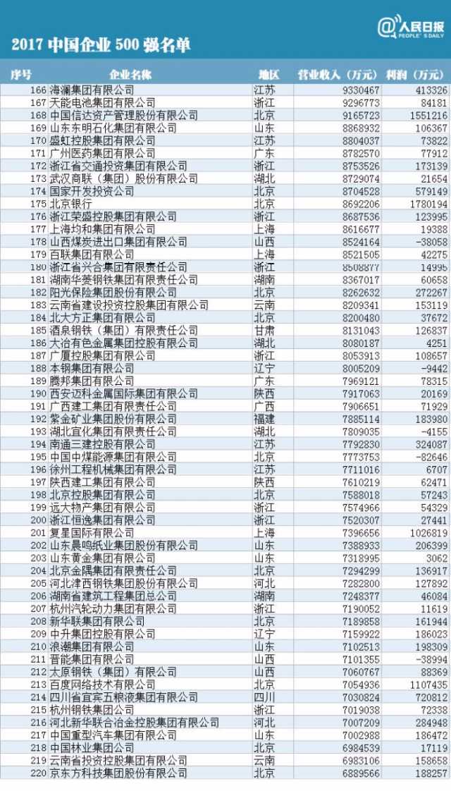 2017中國(guó)企業(yè)500強(qiáng)的入圍門(mén)檻為營(yíng)業(yè)收入283.11億元,達(dá)到歷史新高,較上年大幅提高了39.65億元,提高幅度是自2002年發(fā)布中國(guó)企業(yè)500強(qiáng)以來(lái)以來(lái)最大的。