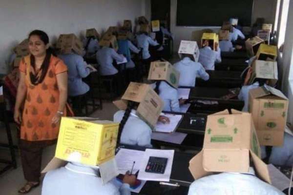 印度學(xué)校為防作弊讓學(xué)生頭戴紙箱考試 被批荒唐