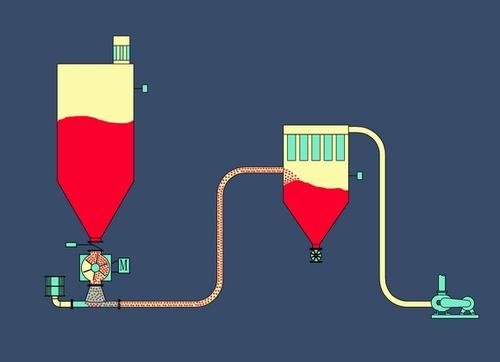 密相氣力輸送原理:密相輸送時(shí),顆粒在少量氣體松弛的流動(dòng)狀態(tài)下進(jìn)行集體運(yùn)動(dòng),但不是氣體引起的加速,而是通過(guò)靜壓差移動(dòng)。在供給過(guò)程中,物料通過(guò)氣動(dòng)閥重力進(jìn)料到發(fā)送罐中,置換出的空氣通過(guò)排氣閥排出。發(fā)送罐液位計(jì)的高警報(bào)后,進(jìn)料完成,進(jìn)料閥門(mén)與排氣閥門(mén)同時(shí)被關(guān)閉,而后通過(guò)進(jìn)氣閥向發(fā)送罐頂部及底部加入壓縮氣,加人的壓縮氣與物料相混合,罐內(nèi)的壓力達(dá)到設(shè)定值時(shí)便自動(dòng)打開(kāi)底部出料閥,然后物料以栓狀流形式輸送,直至物料排空,關(guān)閉出料閥,完成一次輸送循環(huán),繼續(xù)進(jìn)行下一次輸送循環(huán)。密相發(fā)送罐氣力輸送有單發(fā)送罐輸送和雙發(fā)送罐輸送:單發(fā)送罐輸送,物料在管道內(nèi)不是被連續(xù)輸送;雙發(fā)送罐輸送,因?yàn)槠渲幸粋€(gè)發(fā)送罐輸送,另一個(gè)發(fā)送罐進(jìn)料,兩個(gè)發(fā)送罐交替操作,物料在管道內(nèi)連續(xù)輸送,可以連續(xù)生產(chǎn)。輸送氣體常采用空氣和氮?dú)?,?dòng)力一般由壓縮機(jī)供給。