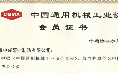 中國通用機(jī)械工業(yè)協(xié)會會員證書